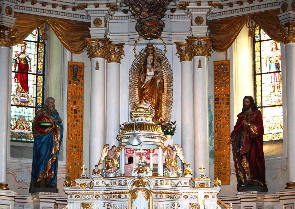 A székely hitélet szent tárgyává vált csodatevő Szűz Mária kegyszobor a biblikus jelenetben feltűnő Napba öltözött asszonyt ábrázolja, akinek lába alatt a Hold és a feje körül a tizenkét csillagból álló koszorú látható.
