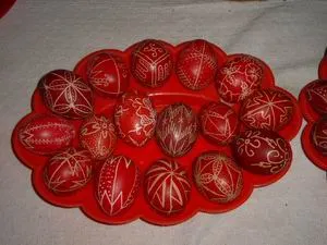 A gyimesi csángó írott tojások készítési módját Kováts Dénes tanulmányozta. A tojásírás formái és mintái: békasegge, rózsa, kégyó, nagy kankaju, patkó, kicsicserelapi, cifrakantár, kakastaréj, tyúklába, báránylába, fecskefarka, kupás, füstös, csillag, tanerruja, ördögtérgye, hóvirág-havadi, kecskeköröm, fehérkabala, tekerőlevél, kukuk nyelve.