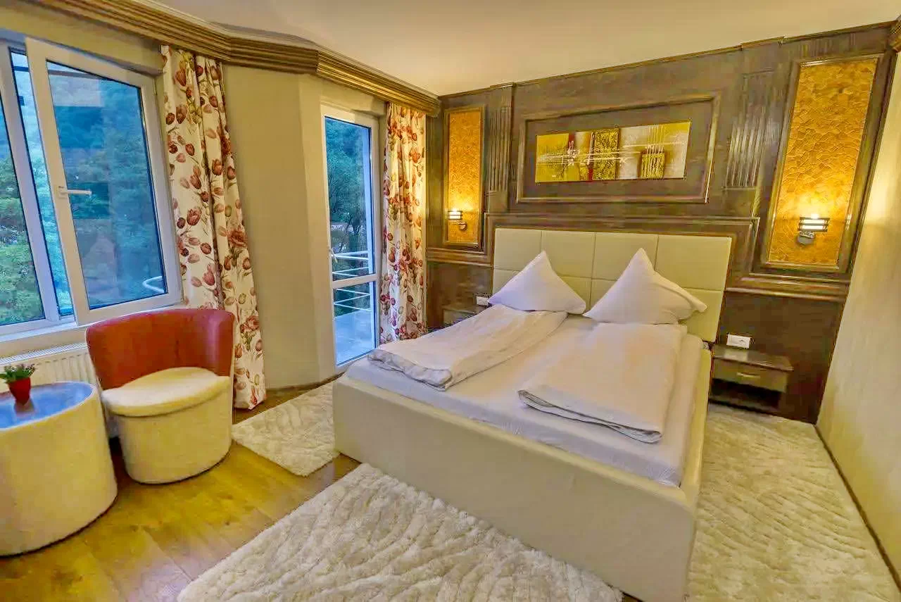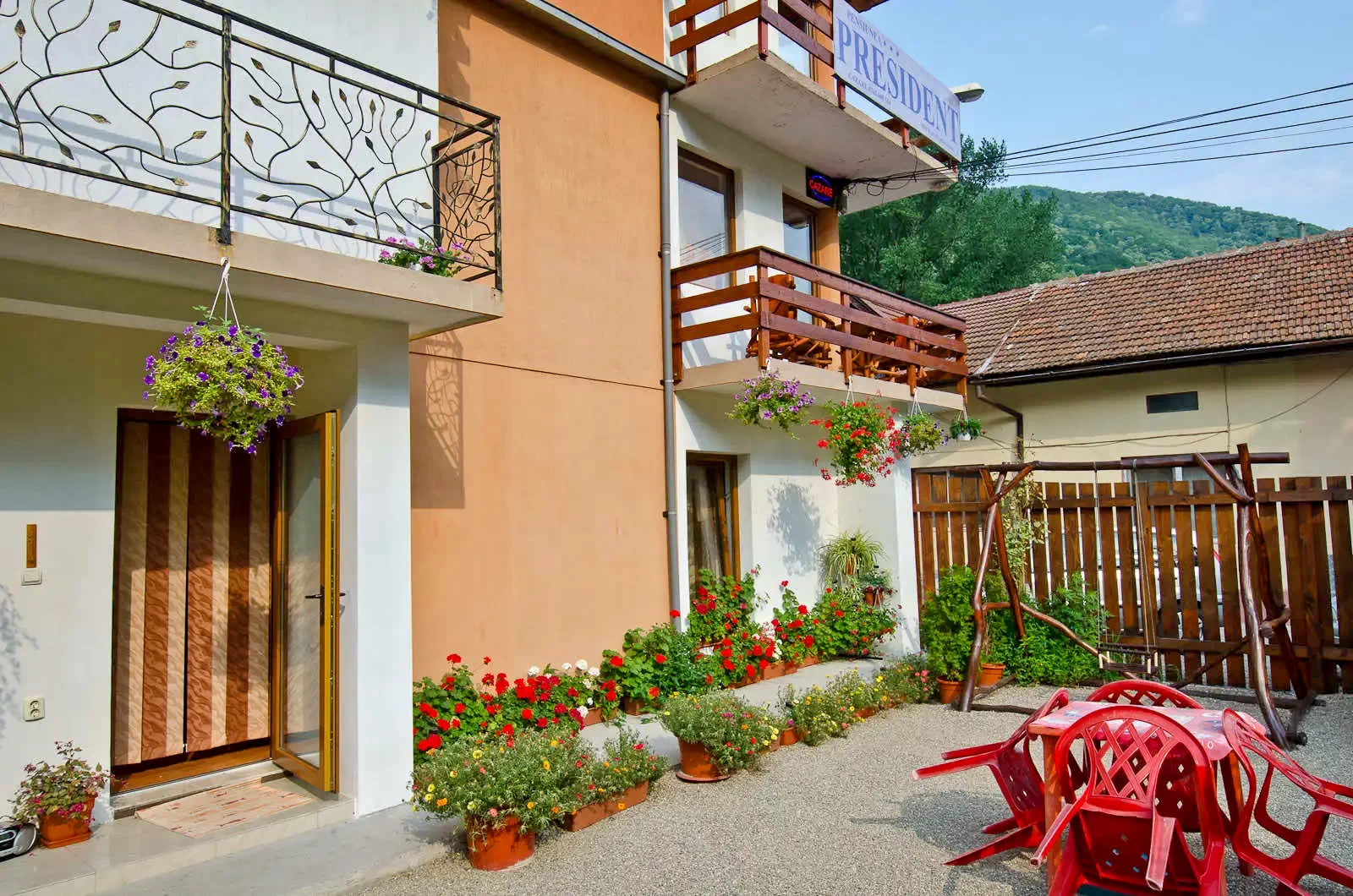 Herkulesfürdő szállás, President Panzió *** a Cserna folyó partján helyezkedik el, a régi településközponttól fél, az új központtól 1,5 kilométernyire, és hat kétágyas szobában kínál szálláslehetőséget, saját fürdőszobával és televízióval.