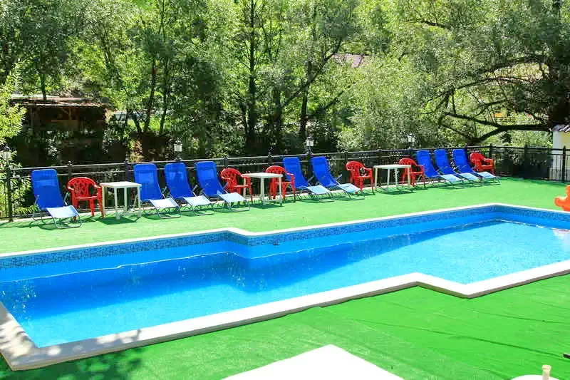 Herkulesfürdő szállás, Jojo Panzió *** területén melegített vizű medence és hamarosan termálvizes fedett medence szolgálja a vendégek kényelmét. A kerti filegória és grillező a hétvégi bográcsolás és grillsütés kedvelt helyszíne.