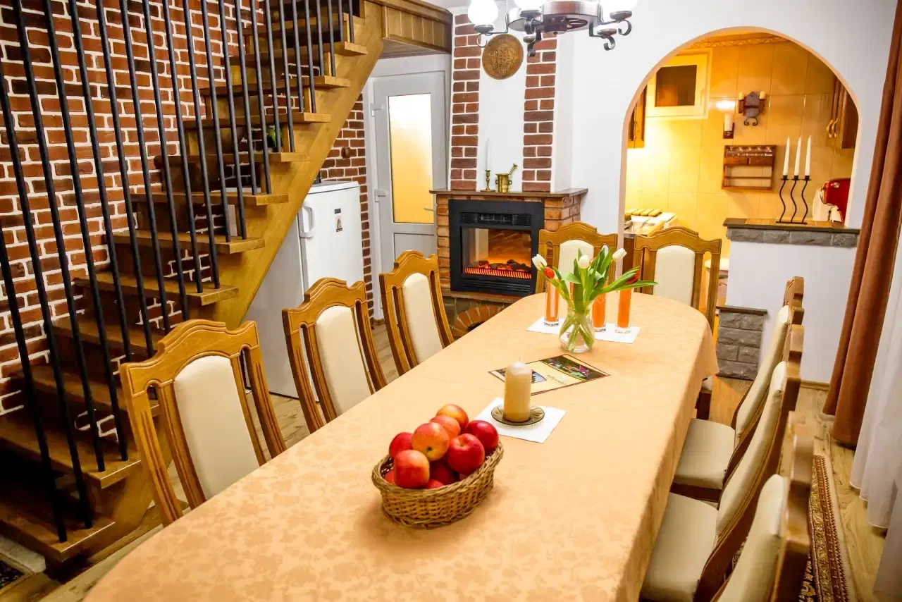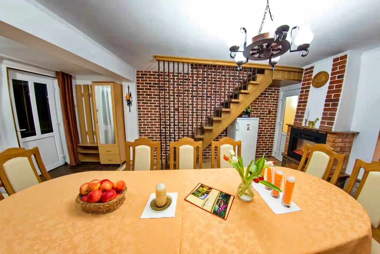 Sepsibükszád, Tusnádfürdő szállás, Sólyomkő Kulcsosház *** földszinti társalgó-étkező lehetőséget nyújt a vendégeknek a téli estéken is együtt szórakozni, nyáron viszont mindenképp a kerti kemence melletti beszélgetéseket ajánljuk, a ház erkélyéről pedig az erdélyi naplementét is megcsodálhatják.