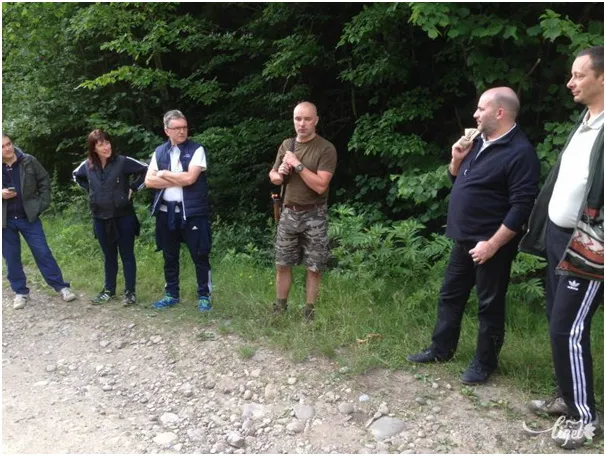 A község vadőre, Zsolt, hozzáértéssel hajtja a dzsipet a kanyargós és keskeny hegyi úton. Katonás megjelenése ellenére barátságos és kedélyesen válaszol kérdéseinkre. Egy ponton a dzsip megáll, és az óriás óvatosan kiszáll, aztán hangtalanul elővesz egy nagy távcsöves mesterlövészpuskát a csomagtartóból. A legtöbb vadásznak, akit ismerek olyan puskája van, amely alice patronokat használ: vagyis amikor meghúzza a ravaszt, tucatnyi kis golyót (sörétet) lő az állatra. Nem kell nagyon pontosnak lenned ahhoz, hogy eltalálj valamit egy ilyen fegyverrel. A távcsöves puskához azonban nagyvadra való éles töltény tartozott. "Nagyon erős puska. Bármire vadászhatsz vele "- mondta Zsolt. Innen már gyalogosan és csendben folytatjuk kaland túránkat, egy erdei úton, amely egyszer csak fenyők által szegélyezett ösvényré változik és máris feltűnik a felirat egy fa törzsén "VIGYÁZAT MEDVE VESZÉLY!”