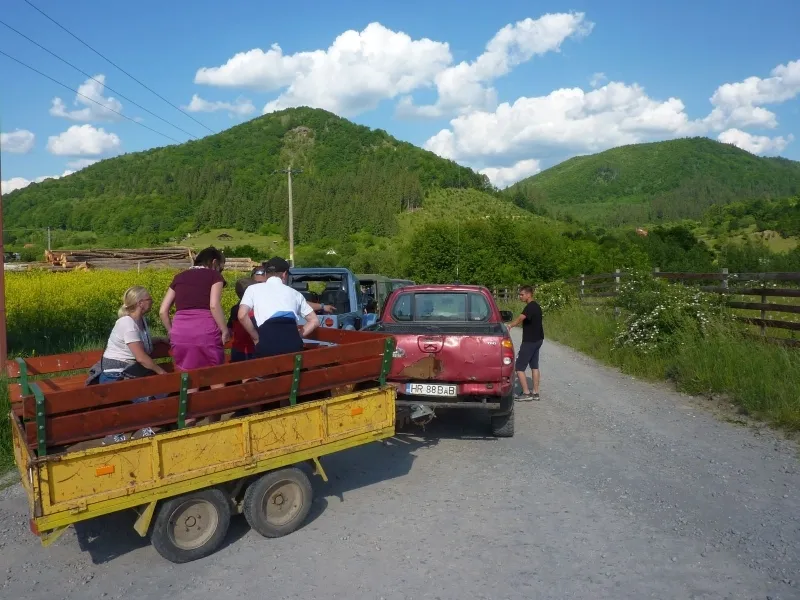 A vadőr, a medveles program adminisztrátora Zetelaka községben, a Székelyudvarhelyt és Gyergyószentmiklóst összekötő út Desági letérő melletti parkolóban várta csoportunkat terepjárója mellett.